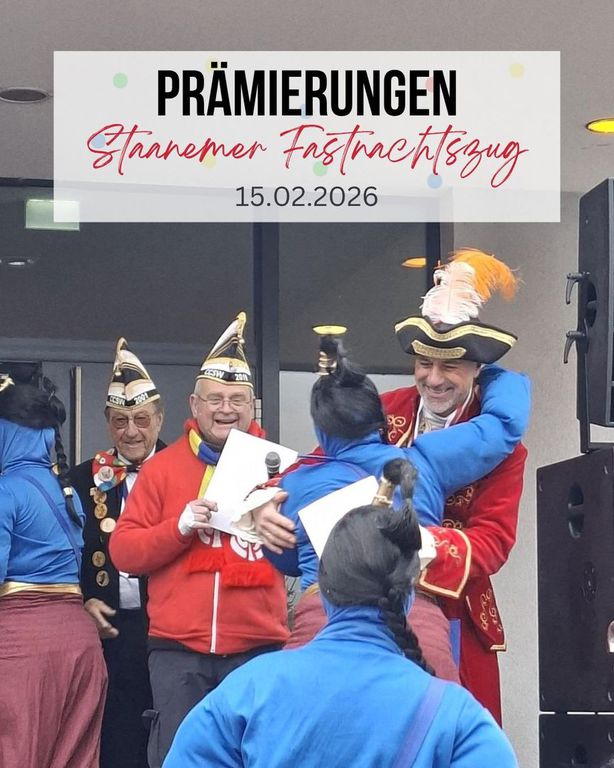 Im Anschluss an unseren diesjährigen Staanemer Fastnachtszug werden wieder die schönsten 5 Gruppen vor der Kulturhalle prämiert.