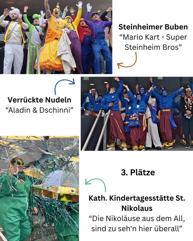 Außerdem erfolgt nach der Zugauflösung die Prämierung der fünf schönsten Beiträge des Steinheimer Fastnachtszugs vor dem Kulturhalleneingang. Für die originellsten Ideen mit gekonnter Aufmachung und